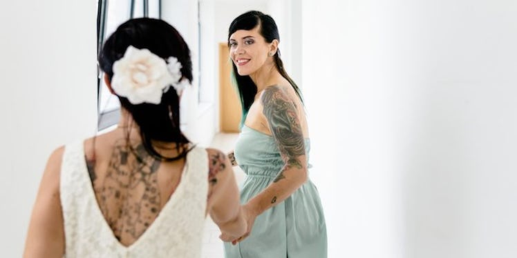 It's so nice to pause and remember that love is real and marriage isn't just for our parents; it's for us, too. It's nice to put on a fancy dress and heels and walk in a line with a groomsman on your arm. It's nice to see the speeches you witnessed in every movie growing up (and iconic lines like, "With this ring, I thee wed") performed in real life, and to hear the stories behind something old, something new, something borrowed, and something blue.