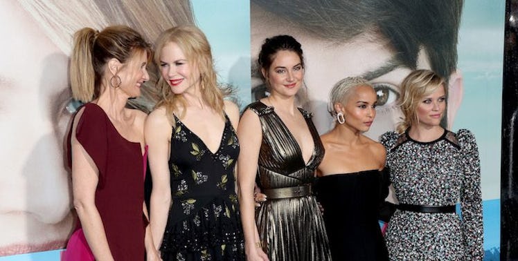 Big Little Lies premiered back in February, and at the time, Woodley was the only non-blonde lead role on the show. Even Zoe Kravitz, whose character Bonnie sports long, dark locs on the show, was blonde as the show aired and up until recently. The novel-turned-mini-series is nominated for the Outstanding Limited Series award tonight, and Kidman and Witherspoon are facing off against each other in the Outstanding Lead Actress in a Limited Series or Movie category. Woodley and Dern go head-to-head in another division, the Outstanding Supporting Actress in a Limited Series or Movie group. Essentially, the ladies are competing against their costars, which suggests the idea that the kumbaya-singing Woodley may have wanted to unify and represent her squad.
