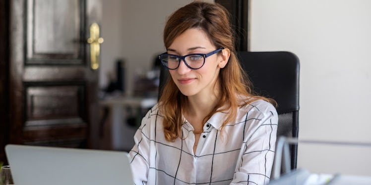 It's all about right angles. First of all, make sure your chair is at the right height. When you've got it right, your feet should be flat on the floor and your knees and hips should be bent at a 90 degree angle.