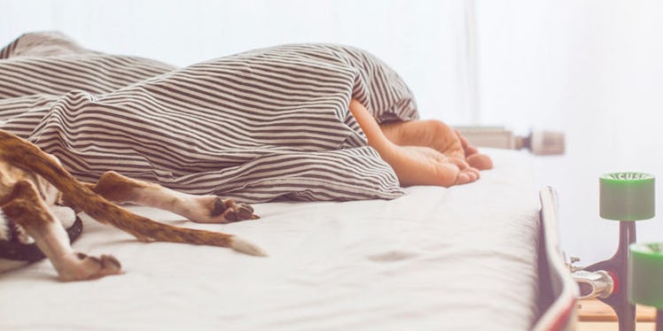 “Another option is to train your dog to stay off of your bed,” Diamond adds. “On many occasions, when a dog interrupts a sexual session, it's because they feel that its territory (aka your bed) is being threatened.” This training, according to Diamond, can be done in just a few weeks.