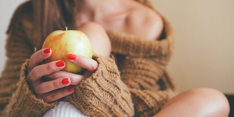 She peered at me with vacant, pale gray eyes and leaned in so close that her breath tickled the little hairs on the back of my neck. "If you really want to be skinny, like REALLY skinny, just eat ONE apple with a little Sweet n' Low sprinkled on top for lunch. Every. Single. Day."
