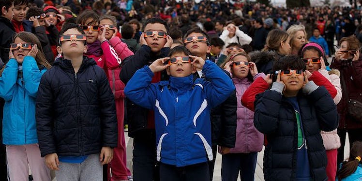 According to NASA, approved solar eclipse safety glasses must come with official listed certification, noting that the glasses are ISO 12312-2 compliant with safety regulations. These glasses look extremely similar to the 3D glasses you wear at the movie theater, without the red and blue lenses. Instead, eclipse glasses have more of a darkened, reflective look to its lenses, ensuring harmful rays cannot penetrate and cause damage to your retina, the part of your eye that interprets images to your brain. The American Astronomical Society has a great list on how to purchase approved solar eclipse glasses, so you can make sure you aren't duped by a big box store recall.
