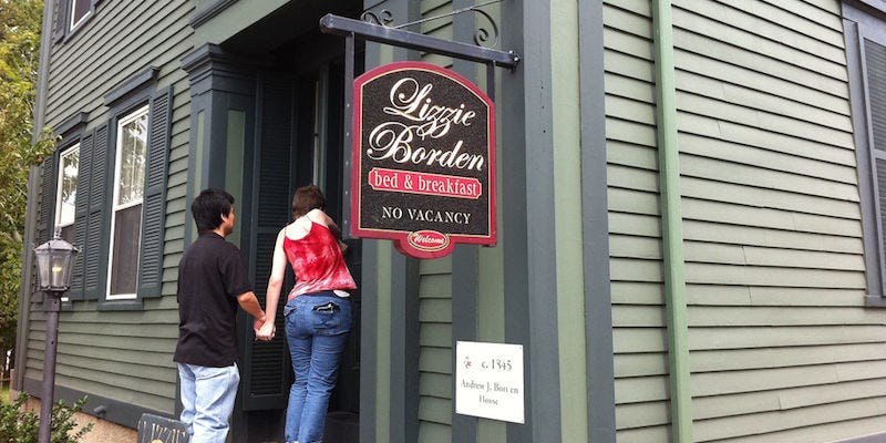 Nowadays, the house where the crimes took place has been converted into a bed-and-breakfast, because nothing says hospitality like “This was the site of an axe murder.”