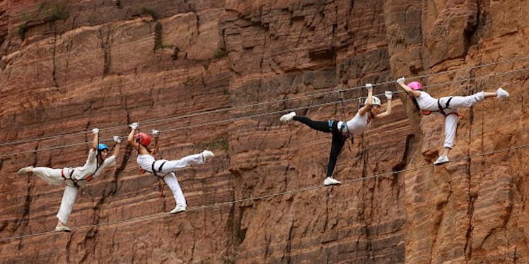 TBH, when I think about performing some of the difficult balances sprinkled throughout a typical yoga class on a f*cking cliff, I get queasy almost instantaneously. And yet, Chinese yoga enthusiasts are bravely making this scary endeavor a total reality, and showing everyone how to take a simple tree pose to literal new heights.