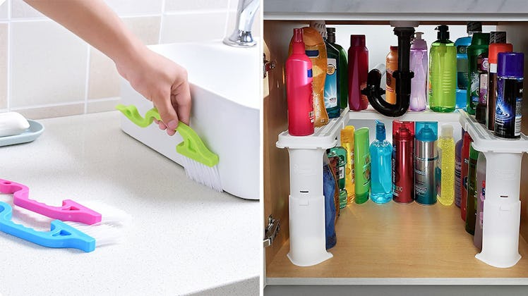 It’s hard to organize the space underneath your kitchen or bathroom sink with all those pipes in the way — unless you have this U-shaped cabinet organizer. It's made to fit around your plumbing, and the height and depth are adjustable. Many reviewers raved about how it’s “easy to assemble,” with one writing, “I was able to adjust the width, height and depth to fit the odd shaped area under my kitchen sink.”