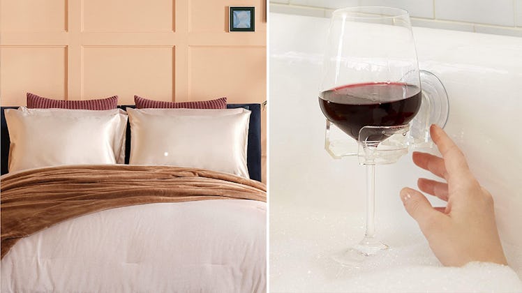 This list also includes plenty of sophisticated touches for your bedroom, as well. Toss this ultra-warm sherpa blanket over the foot of your bed for a cozy touch, or replace your cotton pillowcases with these satin ones that retain your hair and skin’s moisture while you sleep. If you have to make a quick trip to the bathroom, slide on these cross band slippers piled high with luxuriously soft faux fur.