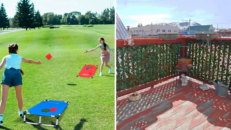 This cornhole set includes two cornhole boards, eight bean bags, and a carrying case. It’s full-sized and durable for competitive play — but unlike most sets, this one has foldable frames and lightweight fabric, so it packs up into its included travel bag and weighs less than 5 pounds. Needless to say, it’s great for backyard parties, picnics, and beach days.