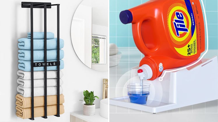 A modern twist on a towel rack — but with much more storage capacity — this bathroom storage solution features a unique three-bar design to securely store rolled-up towels. Available in four finishes, it can hold up to six extra-large towels at a time and is super easy to mount to any wall. Just as good, it frees up space in your linen closet.