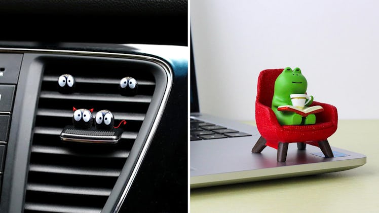 Set this tiny frog figurine in your eye line, and I guarantee that it’ll bring you joy every time you see this. The tiny frog is cuddled up in a soft chair with a cup of tea and a book. “This is so cute. I bought one as a gift for someone else and I loved it so much I ordered one for myself to place on my own desk at work,” says one Amazon reviewer.