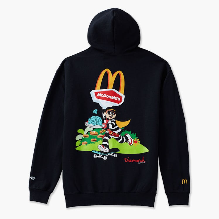 After you’ve stocked up on merch from the first drop, come back on Dec. 14 for the second exclusive drop in partnership with Diamond Supply Co. The trendy streetwear brand is collaborating with McD’s in four Hamburglar-inspired designs. The collection includes a Hamburglar hoodie, short sleeve t-shirt, and beanie in black, and a white long sleeve shirt.