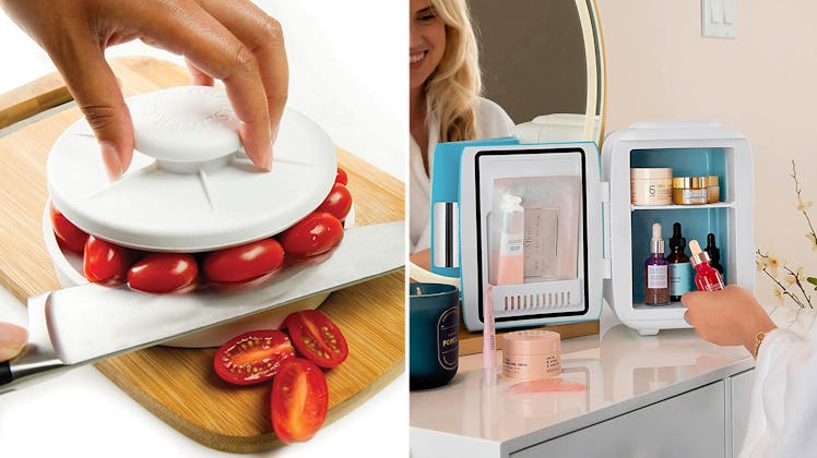 If you’ve ever grappled with a knife and bagel only to end up with two jagged, uneven halves, this food slicer is for you. The bottom layer has nonslip feet, while the top has an easy-to-hold handle. Simply put your food in the middle, be it veggies, bread, or protein, and slice through evenly with maximum support and stability.