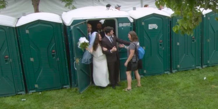 Unsuspecting festival goers in need of a bathroom break got a front row seat to tons and tons of different types of people dressed in costumes literally pouring out of this one particular potty. In a sense, it's like the modern day clown car. The people just never stopped coming out as if the portable bathroom stall was attached to some underground cave filled with clowns, convicts, marching bands and wedding parties.