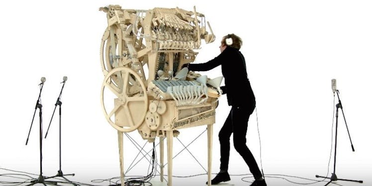 Created by Swedish musician Martin Molin, the Wintergatan Marble Machine is a massive, wooden contraption that uses marbles (2,000 of them, to be exact) and a hand crank to “play” various instruments simultaneously.