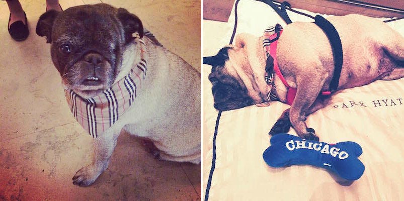 Parker the pug works at the Park Hyatt Chicago hotel. She's new there, but she's learning the ropes pretty quick.