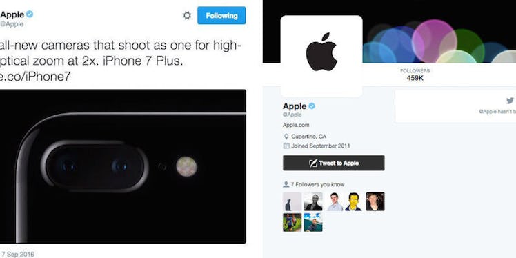 The Apple Twitter account, which is newly active, started tweeting out ads and photos for the iPhone 7...before it was announced at the conference.