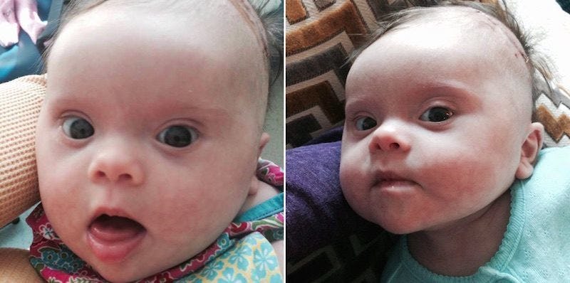 The 2-month-old, born with Down syndrome, was diagnosed with a malignant brain tumor while still in the womb, and doctors said it would've been too risky to operate, according to a Facebook post.