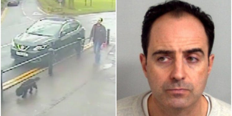 Eerie CCTV footage of Byrne taking his dog for a walk while his wife lay dead at home was shown to the jury.