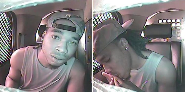 Video taken in the back of a patrol car shows Roberts chewing his fingers and rubbing them against the metal cage separating him from the front seats while looking around to make sure he isn't being watched.