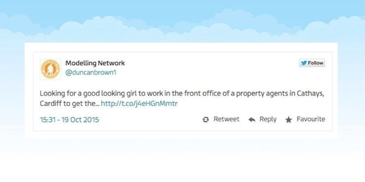 Shocked by this job advert from one of our local letting agencies #everydaysexism #Cardiff pic.twitter.com/2ek1QShr5b — Jo Stevens (@JoStevensLabour) October 20, 2015