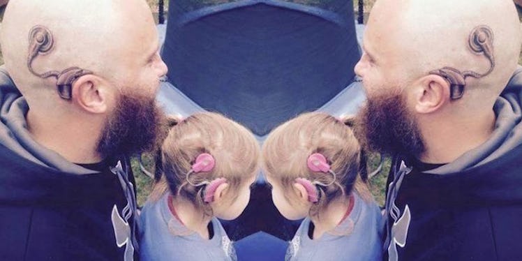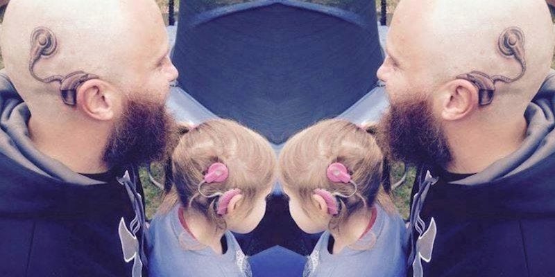 Alistair is at least the second father to get a cochlear implant tattoo to match his daughter's hearing aid.