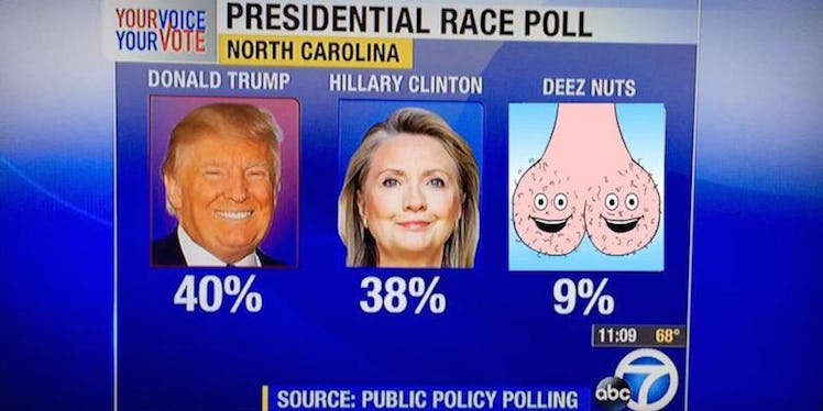 However, one might be a little hasty in taking such reports so seriously, since an Independent by the name of Deez Nuts is apparently the preferred president of nearly one in 10 residents of North Carolina.