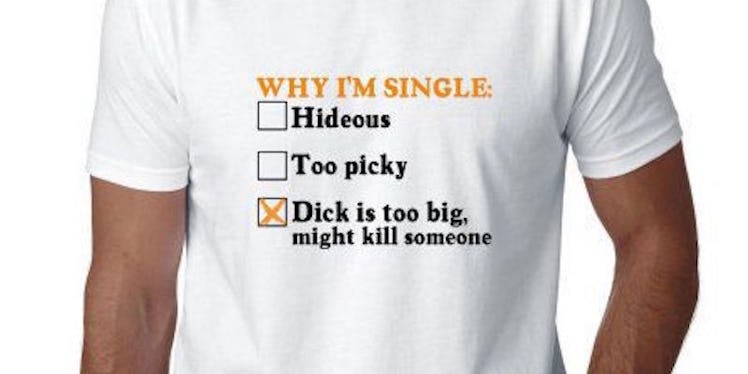 I mean really. Who on earth looks at that T-shirt and is like, "Oh man gotta get that shirt about me being — I mean having — a huge dick."
