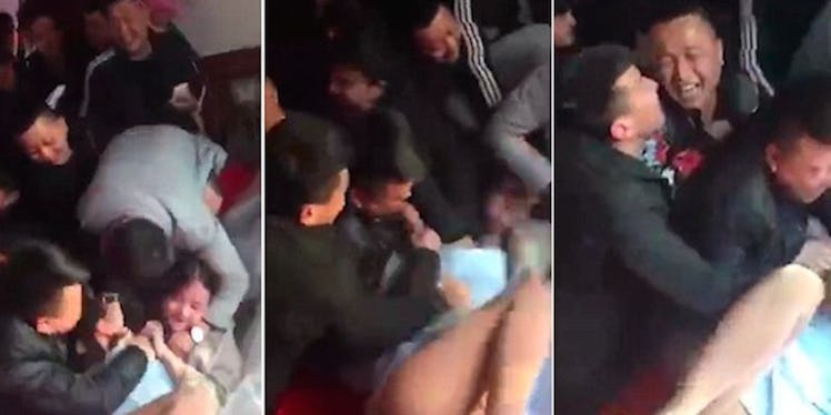 The 10-second clip was uploaded to the video-sharing platform Miaopai on Monday, December 19, by the username "Happy Zhangjiang," along with the caption "It is too disgusting. A video shows a bridesmaid being molested at a wedding."
