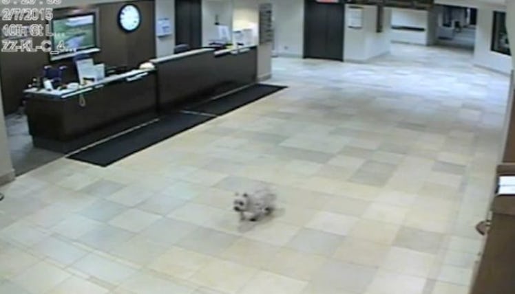 The dog went through the hospital's automatic front doors before being discovered by security cameras.