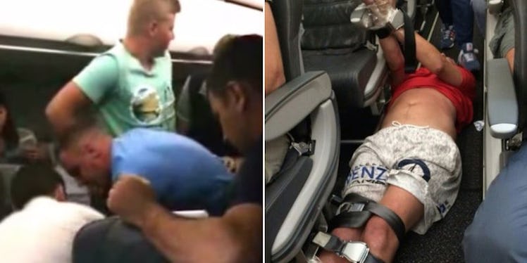 Then they tied him up with seat belts and tape for the remainder of the flight.