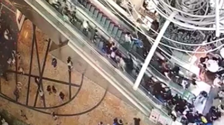 Shoppers at Langham Place in China likely had the same exact thought process after the mall's escalator randomly sped up before jolting into reverse.