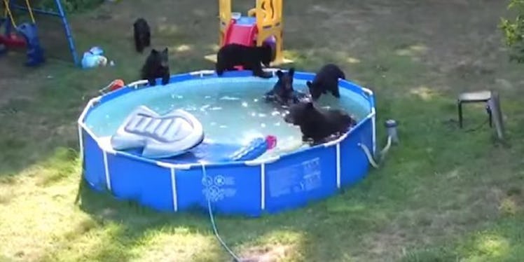 One kid shouts, "They took my floatie," to a remarkably calm mother and father, who apparently chose to watch bears explore their yard for at least 11 minutes instead of calling animal control.
