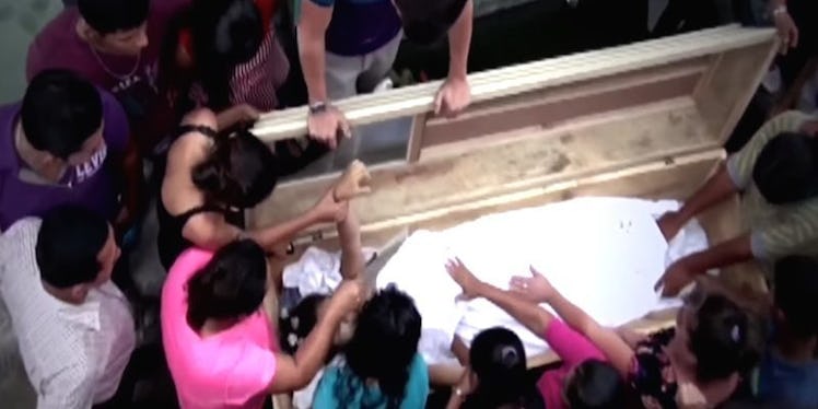 Family members rushed to the coffin and broke it with a sledgehammer.