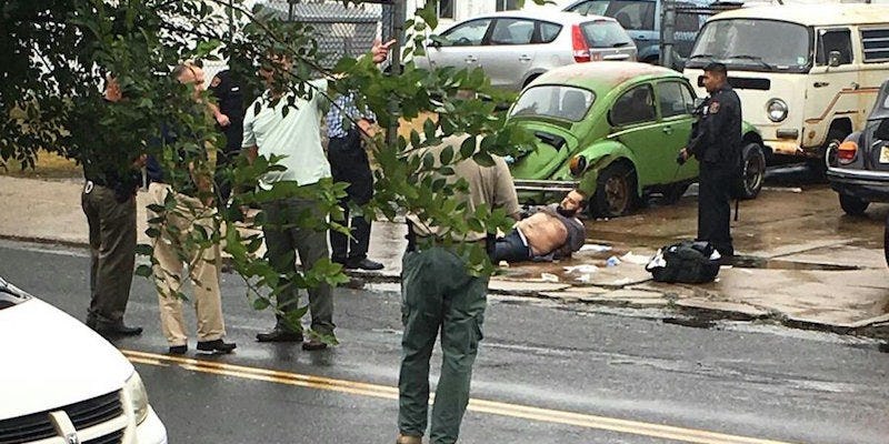 Two police officers were hit during the shootout, according to CNN, and a video of Rahami being taken into custody shows him with a bloodied shoulder on a stretcher.