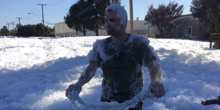 This is something one man, Blake Harrington, took to heart when he rode his bike through the foam.