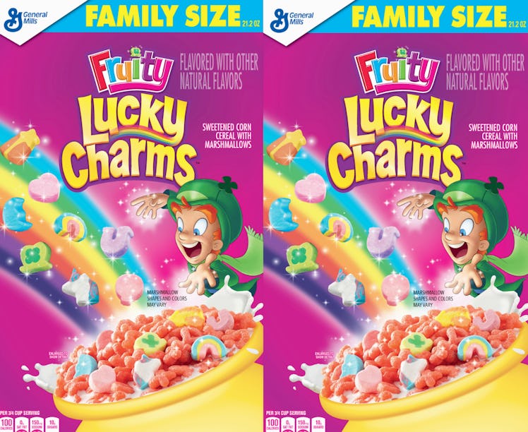 Adding fruity flavor to Lucky Charms is the latest change the cereal has undergone in recent years. Back in November 2018, General Mills blessed the Lucky Charms-lovers with Chocolatey Winter Lucky Charms, a limited edition winter box containing chocolate cereal and marshmallows in snowman and snowflake shapes. In early 2018, General Mills also announced it would retire the hourglass marshmallow (gasp!) and asked users on social media to vote for what would take its place. The winner was a white and purple unicorn, which can be seen in the new Fruity Lucky Charms cereal as well as regular boxes of Lucky Charms.