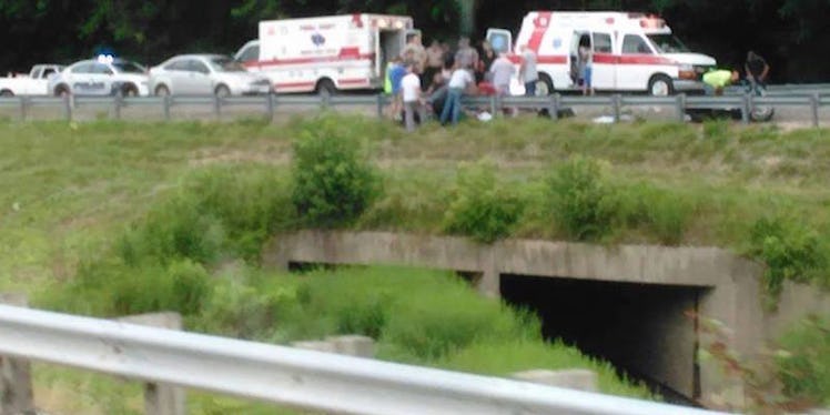 At first glance it looks like nothing particularly out of the ordinary -- you can see two ambulances and a crowd of people swarming around a motorcyclist.