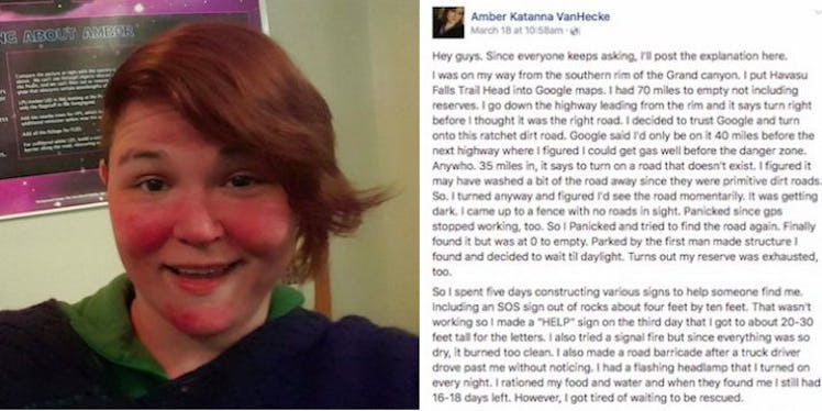 Amber VanHecke described the incredible story of how she survived in the Grand Canyon for five days after her car ran out of gas.