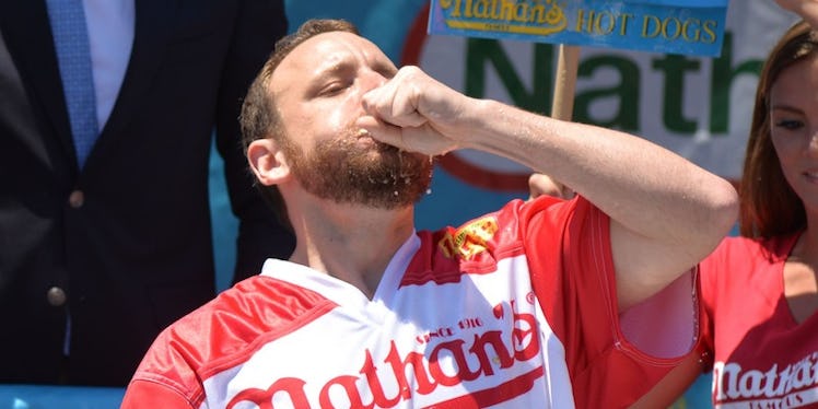 While you probably expected more words from the champ, you have to remember the dude is walking around with his body weight in hot dogs right now. If anything, he should be given a separate championship belt for his ability to form complete sentences after pulling off a wild stunt like this.