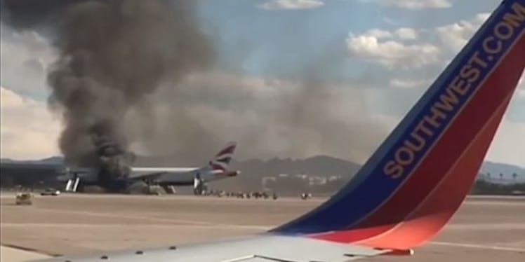 According to ABC News, smoke and flames burst out from under the wings of British Airways Flight 2276 a little after 4 pm (7 pm EST) at McCarran International Airport.