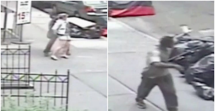 The incident took place near 74th Street and First Avenue at around 6 pm on Monday. The footage shows a man creep up behind a woman and pull down the 27-year-old victim's pants.