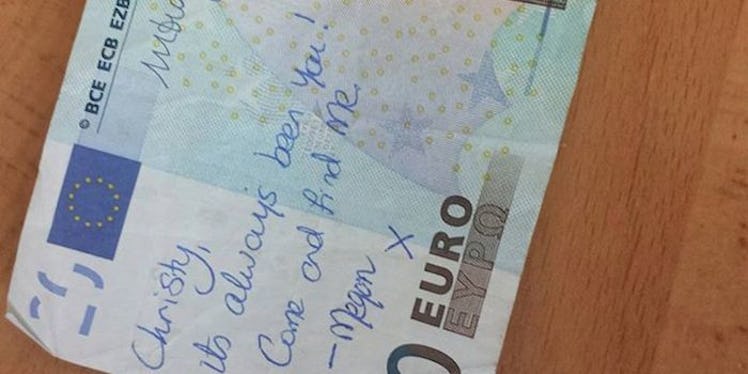 Last week, an Irish woman named Denise O'Reilly found €20 in her purse. On it was a short message, seemingly from one lover to another.