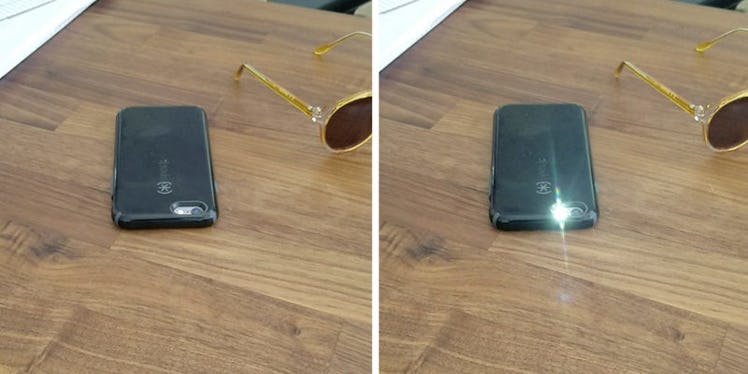 Heads up, though — it's kind of bright. So, if you're feeling furtive, turn it over and have the top of the phone facing you. You'll see the light flash against the table.