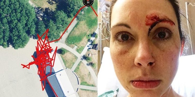 Herron's harrowing experience was unexpectedly mapped by her fitness tracker, which shows violently erratic red lines to depict her movements at the time.