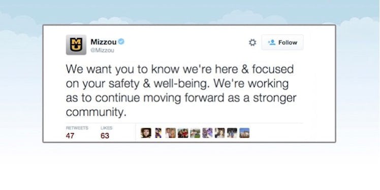 The messages came just one day after the resignation of Mizzou president Tim Wolfe, who was accused of failing to act in response to numerous racial attacks on campus.