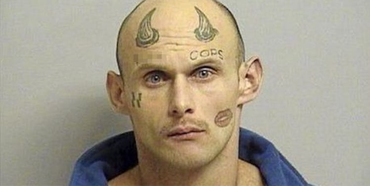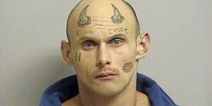 An Oklahoma man with "f*ck cops" tattooed on his forehead finally met his destiny last week when he was arrested.