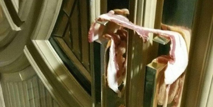 Muslims are forbidden to eat or even touch bacon and pork, which have repeatedly been used in offensive acts against members of the faith.