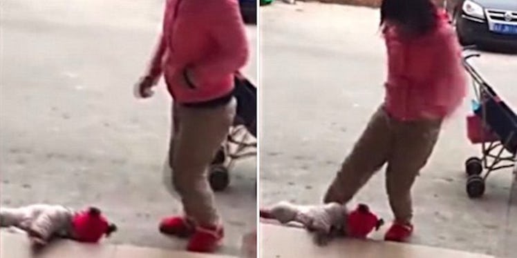 As the 27-year-old mother from Hubei named Chen beats the helpless toddler against the floor, you can hear the frighten child scream.