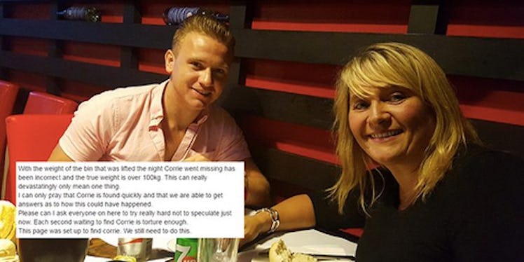 In a heartbreaking Facebook post on a page dedicated to finding Corrie, his mom, Nicola Urquhart, said a mix-up with the weight of the bin delayed the investigation.