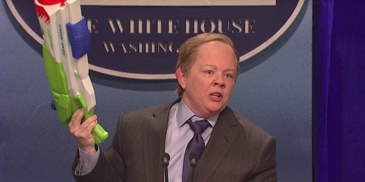 A regular ol' Sean Spicer costume? Eh, kinda boring. BUT Melissa McCarthy dressed as Sean Spicer? Yup, yup... that's some true Nasty Woman status right there. Definitely be sure to bring a water gun. And a moving podium. And so, so many packets of gum.