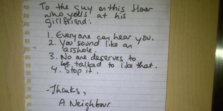 Neighbors Use Post-Its To Shame Man Who Yells At GF: 'Everyone Can Hear You'